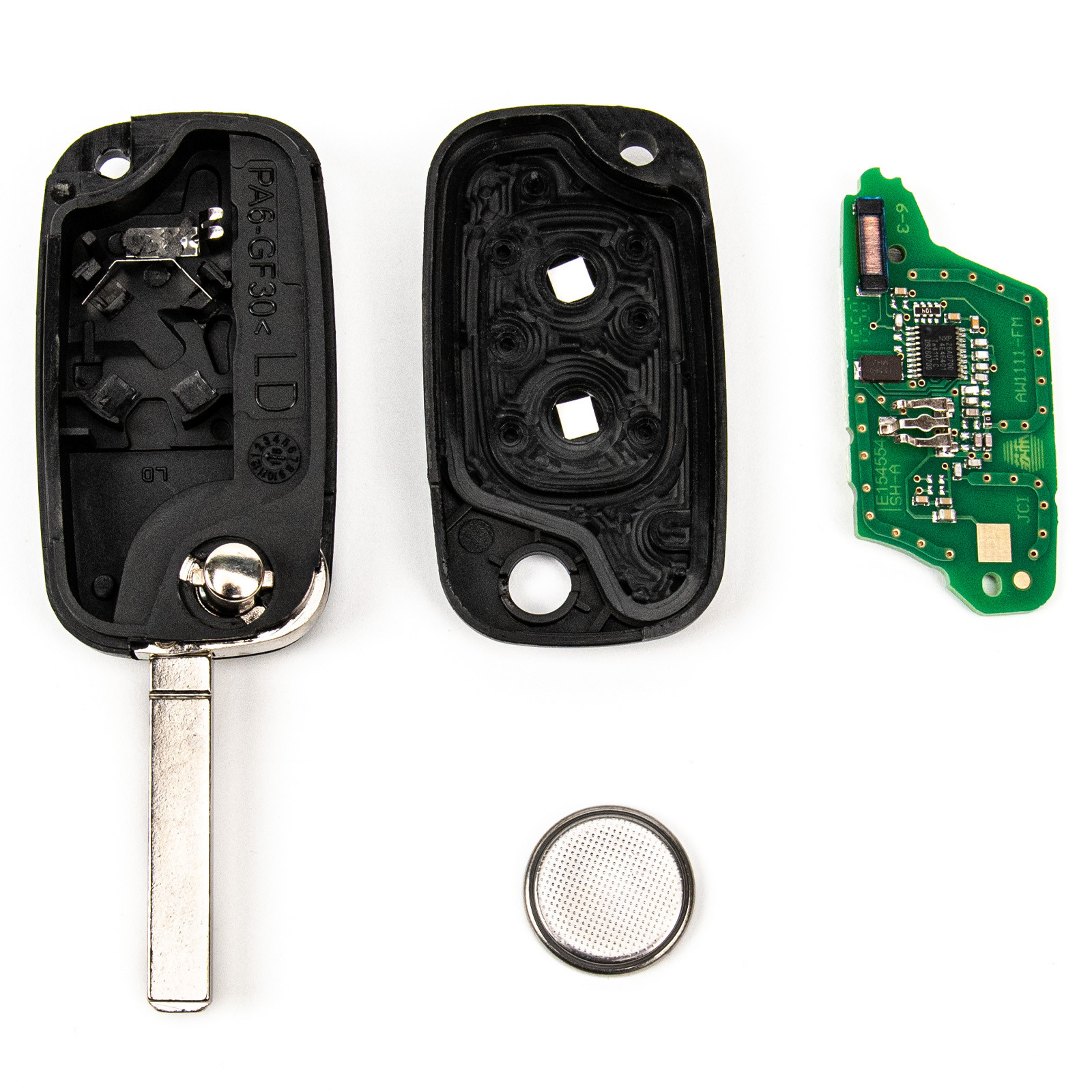 - Kompletter Schlüssel mit Elektronik und Wegfahrsperren-Chip.