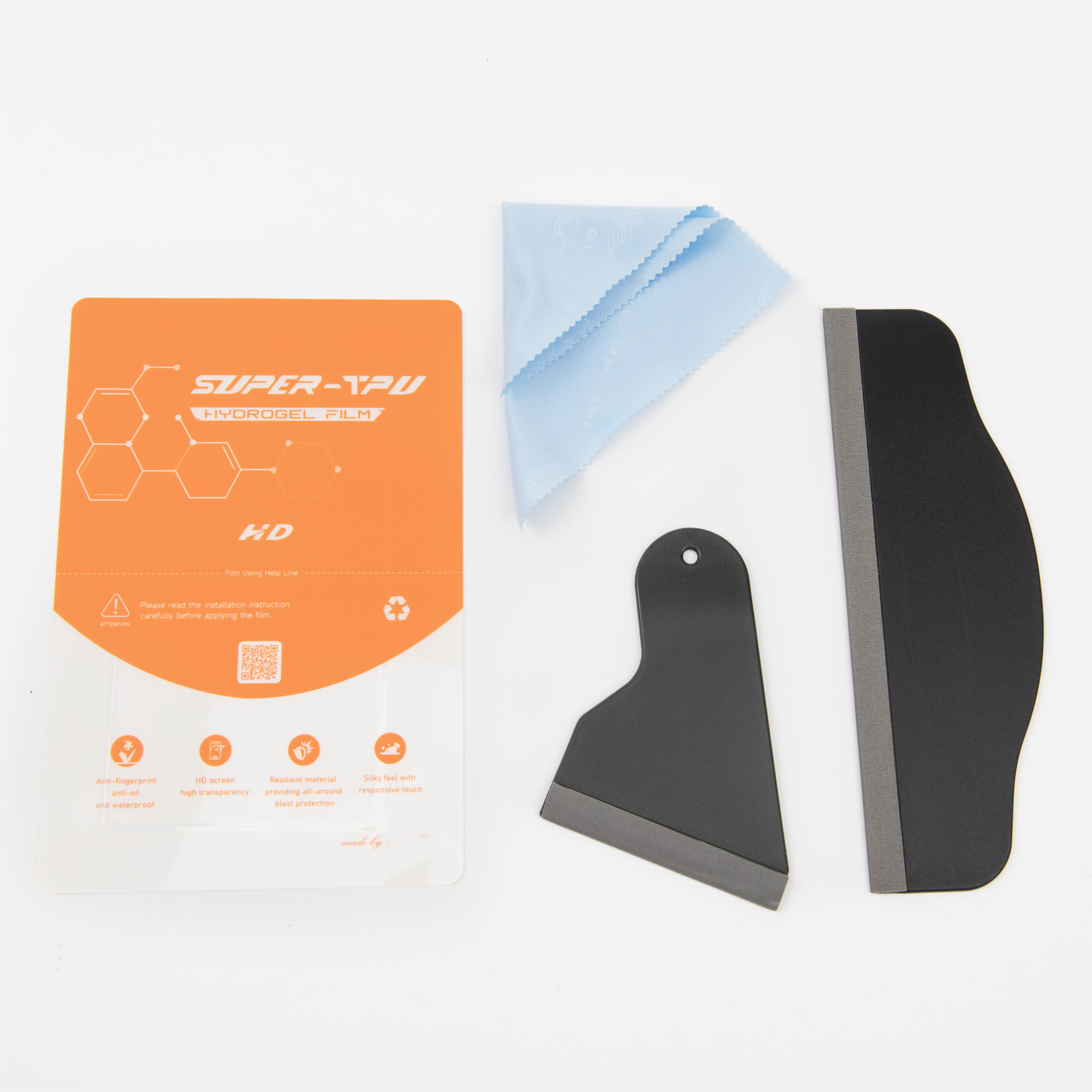 A hydrogel fólia teljesen szárazon telepíthető — nincs szükség vízre vagy permetre.
