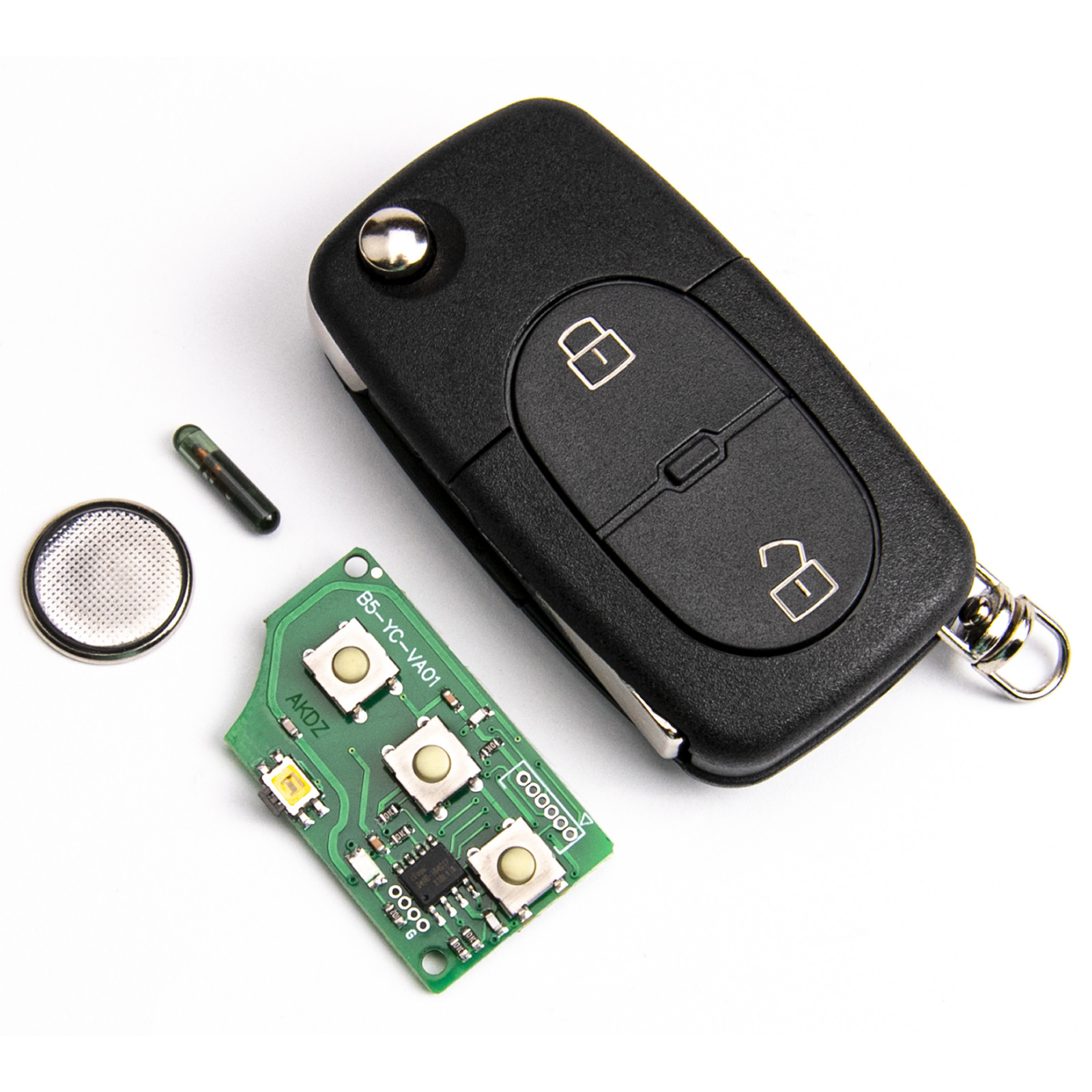 - Kompletter Schlüssel mit Elektronik und Wegfahrsperren-Chip.