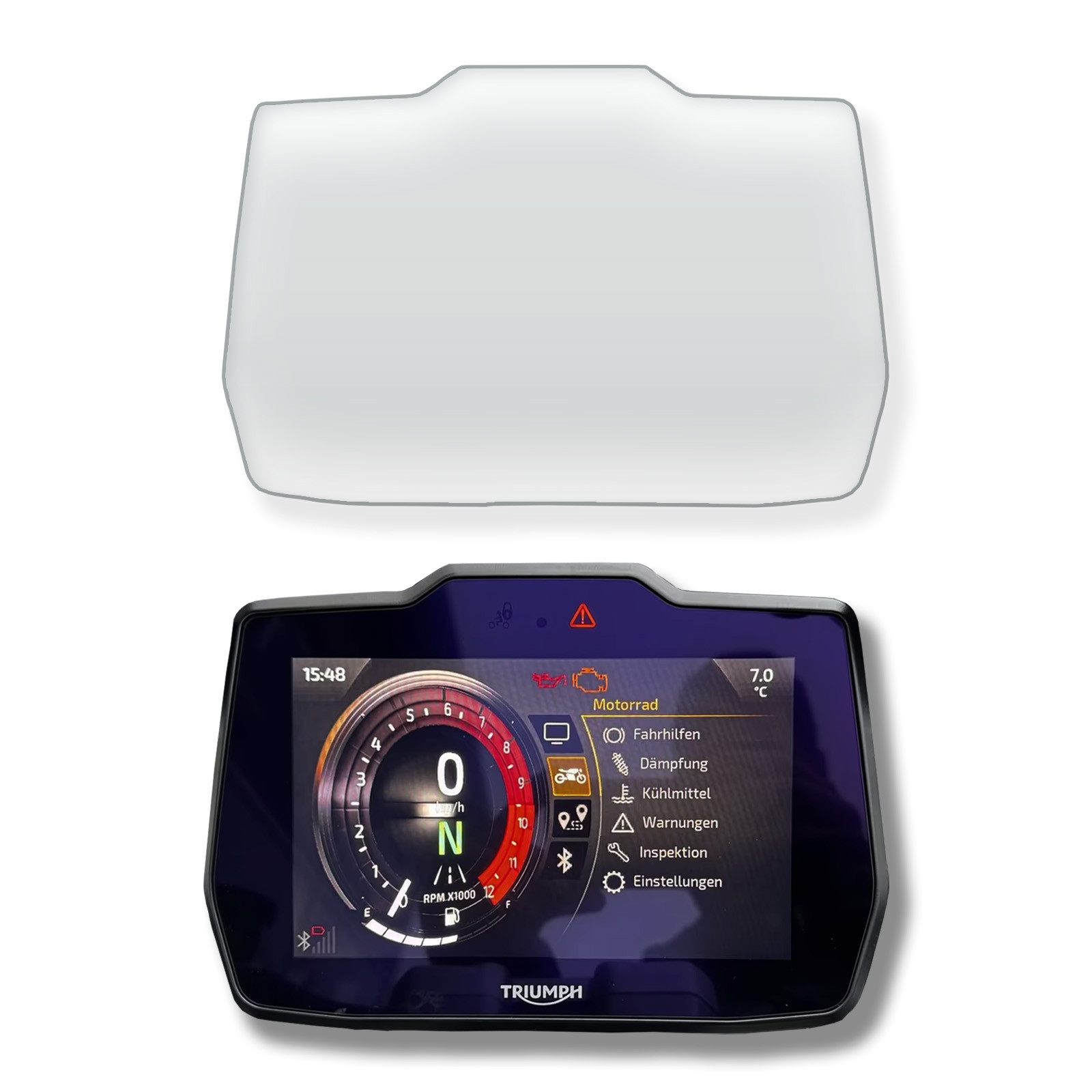 Il display originale Triumph è costoso da sostituire e spesso richiede lo smontaggio dell’intero gruppo anteriore. Prevenire è molto più economico che riparare.